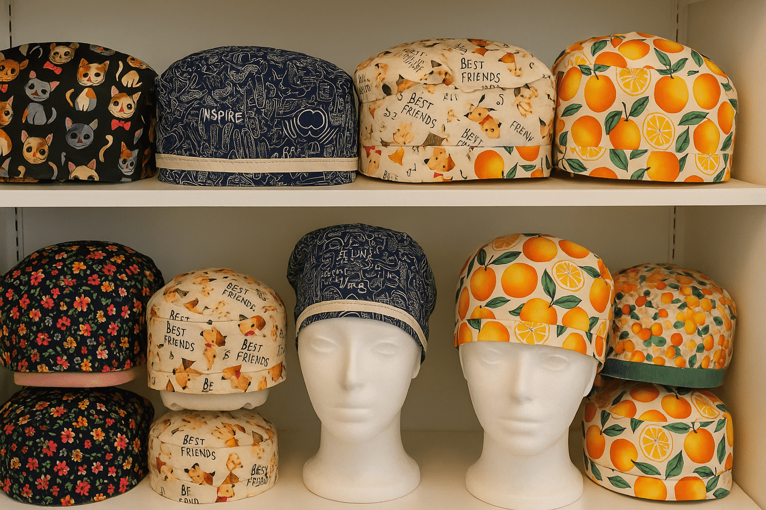 Discover our handmade scrub caps — crafted with care, comfort, and creativity. Each cap features unique patterns and vibrant fabrics that make long shifts brighter. Soft, breathable materials ensure all-day wearability. Designed to fit securely and stay stylish. Add a touch of personality to your workday with Meg’s Stitches!