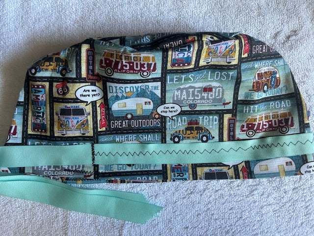 Hit the road in style with our Adventure Awaits Scrub Caps Collection! These playful, travel-inspired designs feature vintage road trip, license plate, and treasure map prints — perfect for free spirits who love a little wanderlust in their workday. Made from soft, breathable cotton and finished with color-coordinated ribbons for a fun, comfortable fit all shift long.